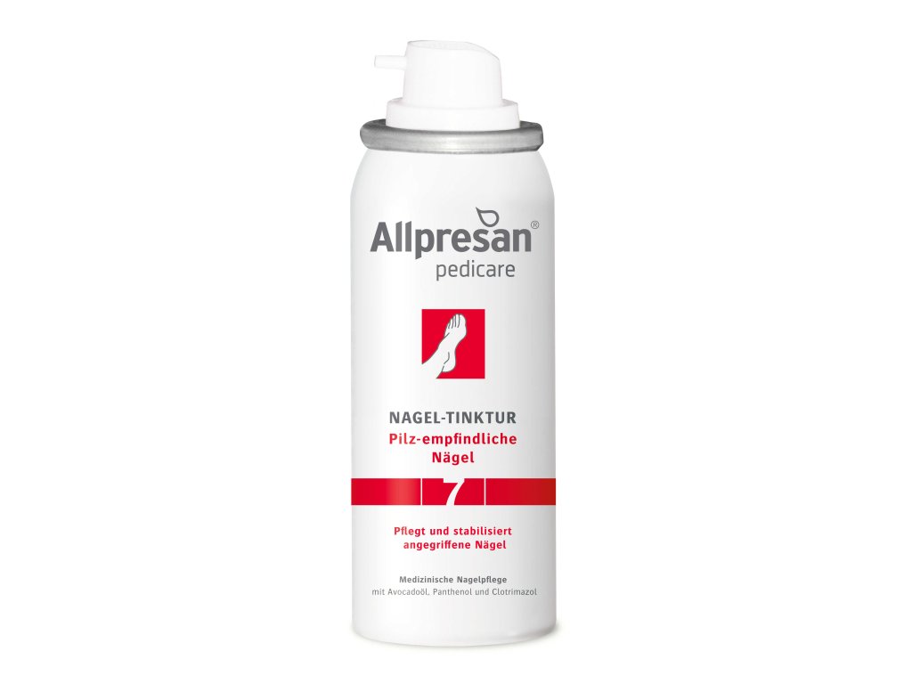 Allpresan® PediCARE (7) tinktura na nehty citlivé na plísně je ideální péčí pro nehty náchylné k mykózám. Tato tinktura posiluje nehty, chrání je před mikrobiálním a fyziologickým poškozením a navrací jim krásný vzhled. Je vhodná jako doprovodná terapeutická péče při plísňových onemocněních nehtů.