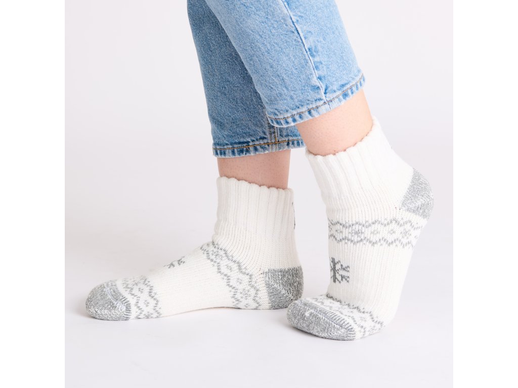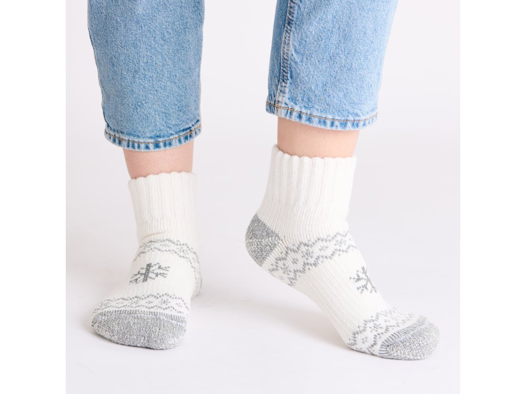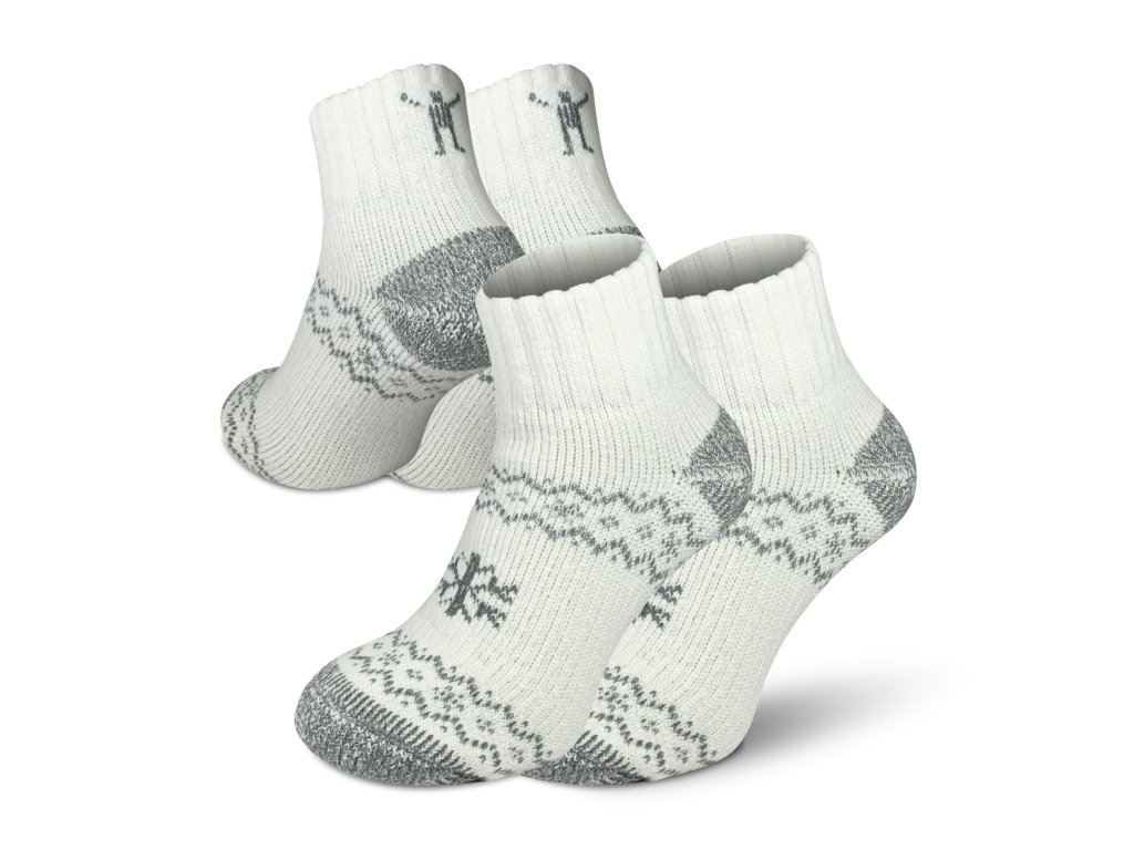 Zvýhodněný balíček dvou párů merino ponožek v bílé barvě se šedým vzorem. Extra teplé, měkké a odolné – ideální na každodenní nošení doma i na volný čas.