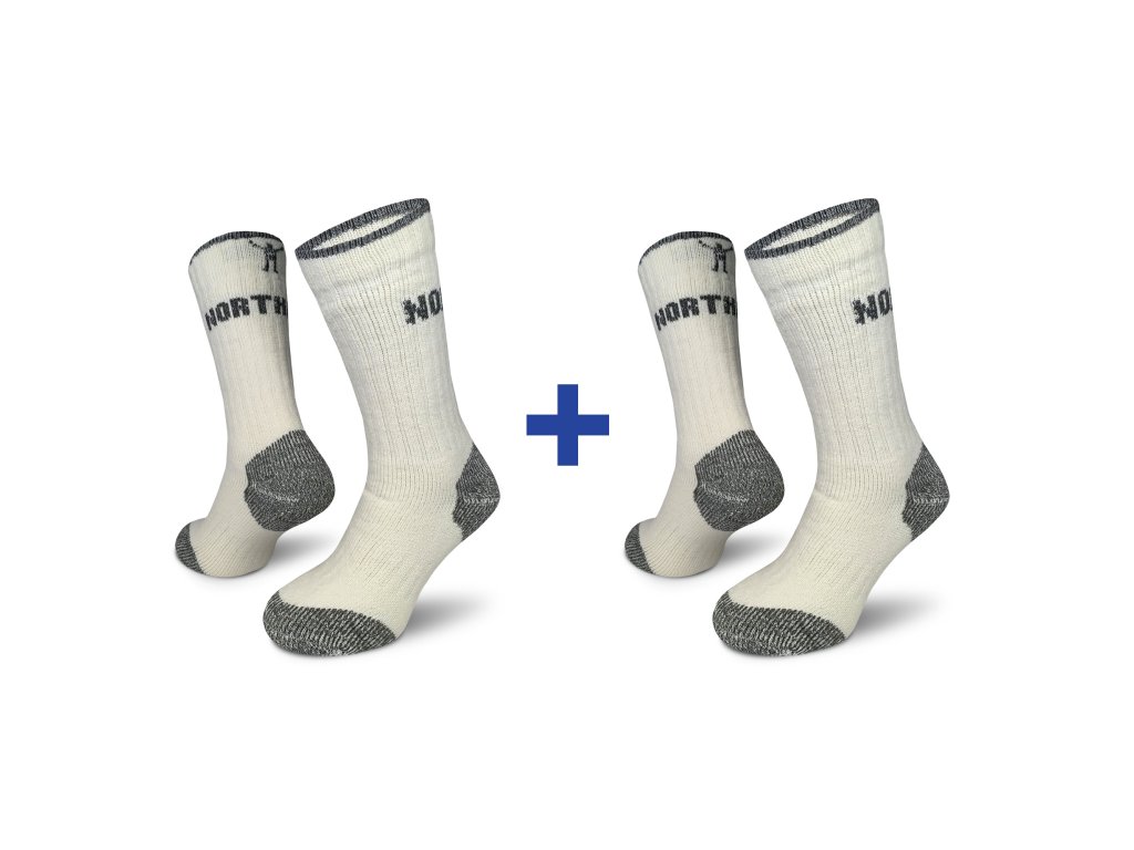 Zvýhodněný balíček dvou párů bílých merino ponožek Arctic Track. Extra hřejivé, odolné a pohodlné – ideální do mrazu, na túry i domácí pohodu.