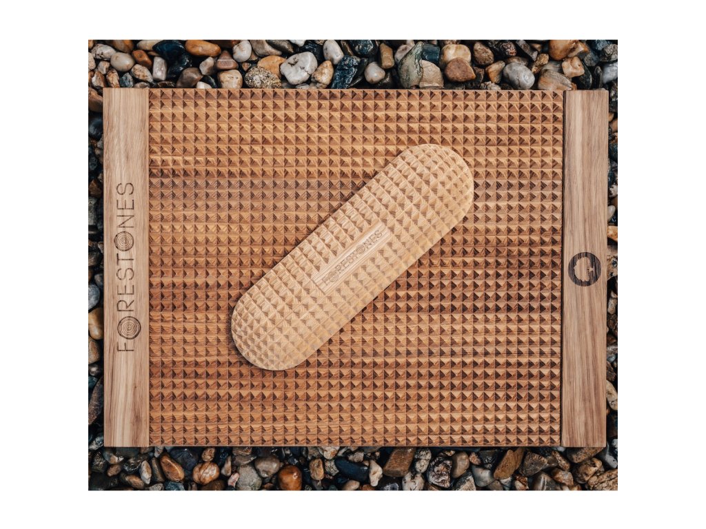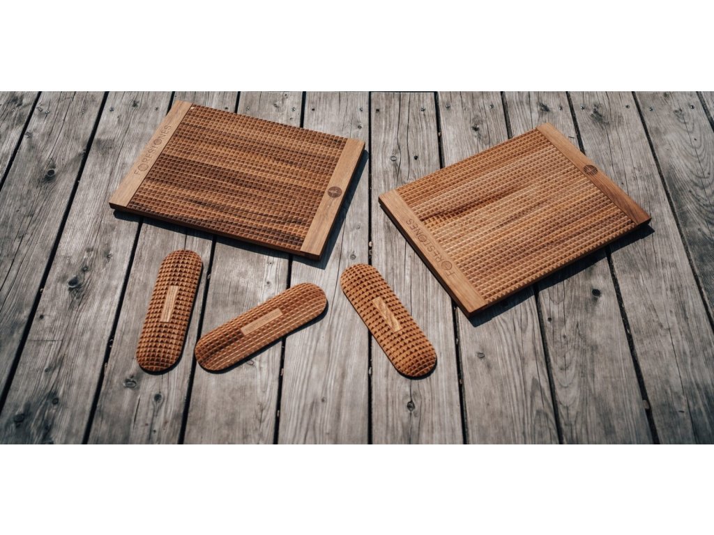 Set dvou terapeutických masážních podložek na nohy od českého výrobce Forestones - BOARDIE a STONIE. Pomáhá správnému držení těla, aktivuje akupresurní body a podporuje zdravou chůzi. Ideální pro domácí péči o chodidla i přípravu na barefoot.