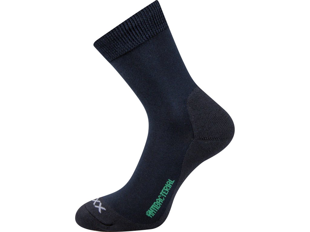VoXX Zeus zdravotní ponožky TMAVĚ MODRÉ jsou navrženy pro maximální pohodlí a ochranu vašich nohou. Mají jemný lem, který neškrtí a zabraňuje otlakům, a zesílené froté chodidlo pro měkký došlap. Díky antibakteriální ochraně SilproX® s ionty stříbra brání vzniku nepříjemného zápachu. Vyrobeny z bavlny, která dobře absorbuje vlhkost, jsou vhodné pro celodenní nošení v teplotách od +10°C do +35°C. K dispozici i v nadměrné velikosti.
